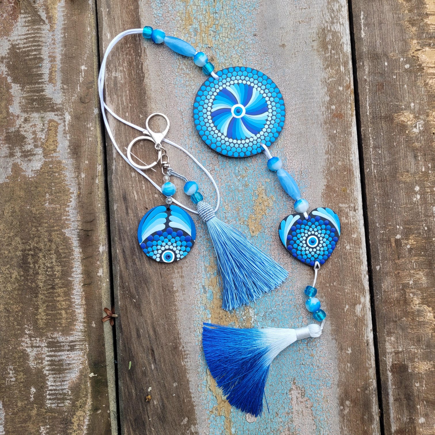 Pingente de porta e chaveiro, feitos em MDF e pintados a mao.